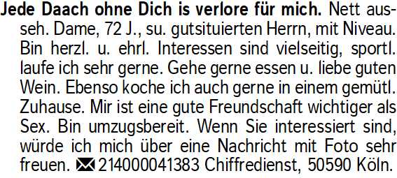 Anzeige vom 29.11.2025 in der Rubrik "Sie sucht Ihn"