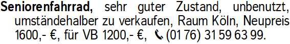 Anzeige vom 29.11.2025 in der Rubrik "Verkäufe"