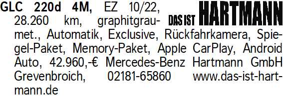 Anzeigentitel: GLC 220d 4M, EZ 10/22, 28.260