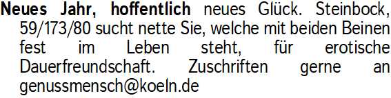 Anzeige vom 10.1.2026 in der Rubrik "Er sucht Sie"