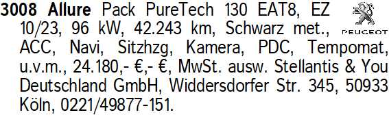 Erscheinungsdatum: Anzeige vom 10.1.2026 in der Rubrik "Peugeot"