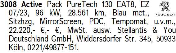 Anzeige vom 10.1.2026 in der Rubrik "Peugeot"