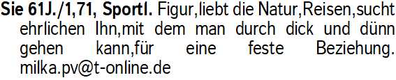 Anzeigentitel: Sie 61J./1,71, Sportl. Figur,l