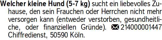 Erscheinungsdatum: Anzeige vom 17.1.2026 in der Rubrik "Tierbörse"