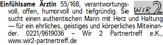 Anzeige vom 17.1.2026 in der Rubrik "Sie sucht Ihn"
