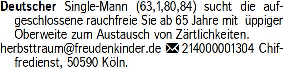 Anzeigentitel: Deutscher Single-Mann (63,1,80