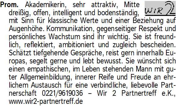 Anzeigentitel: Prom. Akademikerin, sehr attra