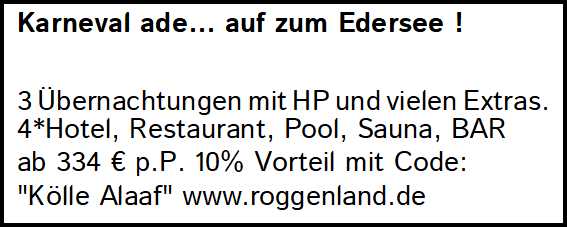 Anzeigentitel: Karneval ade... auf zum Ederse