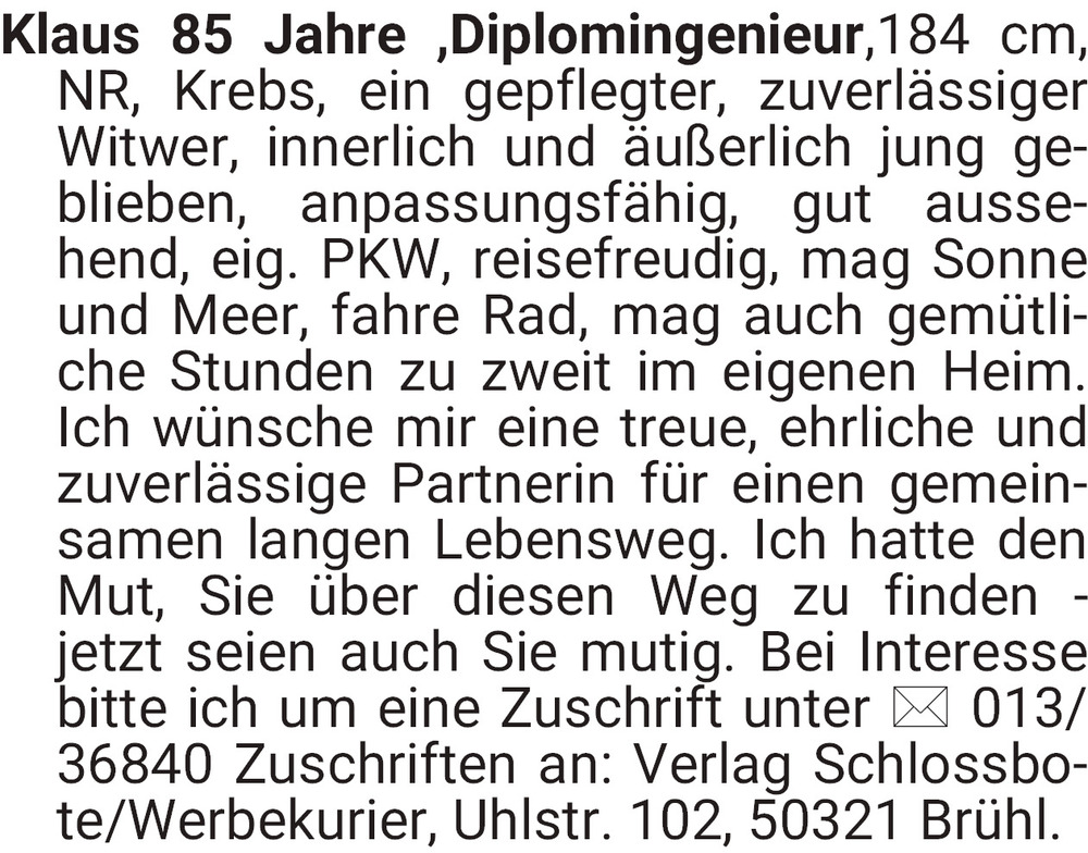 Anzeige vom 20.2.2026 in der Rubrik "Ehewunsch/Bekanntschaften"