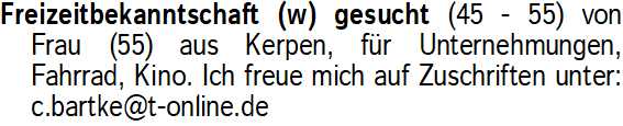 Anzeigentitel: Freizeitbekanntschaft (w) gesu