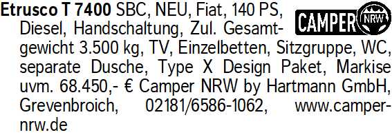 Anzeigentitel: Etrusco T 7400 SBC, NEU, Fiat,
