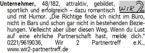 Anzeige vom 20.9.2025 in der Rubrik "Er sucht Sie"