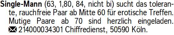 Anzeigentitel: Single-Mann (63, 1,80, 84, nic
