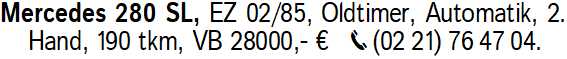 Anzeigentitel: Mercedes 280 SL, EZ 02/85, Old