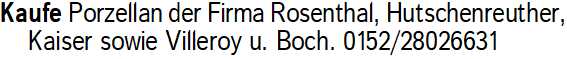Anzeigentitel: Kaufe Porzellan der Firma Rose