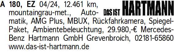 Anzeigentitel: A 180, EZ 04/24, 12.461 km, mo