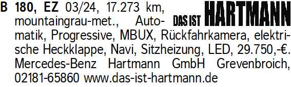 Anzeigentitel: B 180, EZ 03/24, 17.273 km, mo