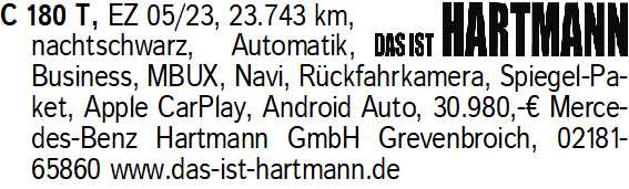 Anzeigentitel: C 180 T, EZ 05/23, 23.743 km,