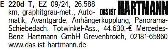Anzeigentitel: E 220d T, EZ 09/24, 26.588 km,