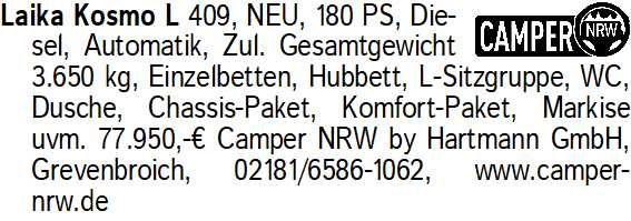 Anzeige vom 27.9.2025 in der Rubrik "Wohnwagen/Wohnmobile"