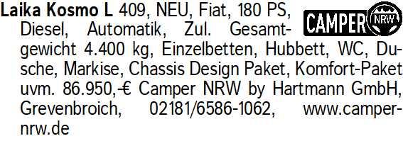 Anzeigentitel: Laika Kosmo L 409, NEU, Fiat,