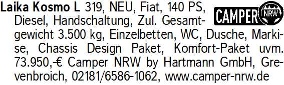 Anzeigentitel: Laika Kosmo L 319, NEU, Fiat,