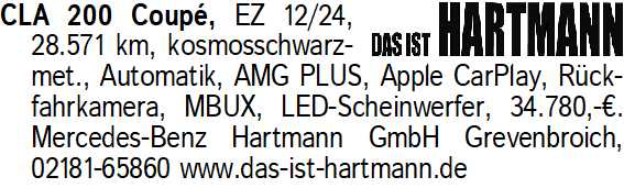 Anzeigentitel: CLA 200 Coup , EZ 12/24, 28.57
