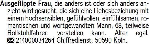 Erscheinungsdatum: Anzeige vom 27.9.2025 in der Rubrik "Er sucht Sie"