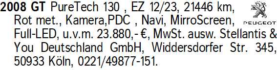 Erscheinungsdatum: Anzeige vom 27.9.2025 in der Rubrik "Peugeot"