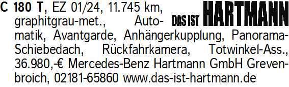 Anzeigentitel: C 180 T, EZ 01/24, 11.745 km,