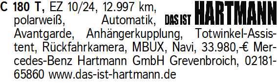 Anzeigentitel: C 180 T, EZ 10/24, 12.997 km,