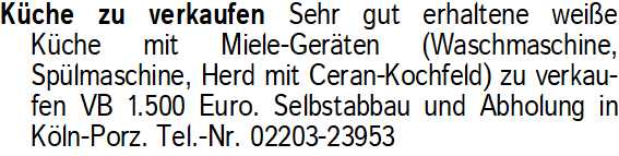 Anzeigentitel: Küche zu verkaufen Sehr gut er