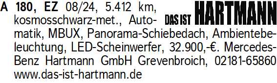 Anzeigentitel: A 180, EZ 08/24, 5.412 km, kos
