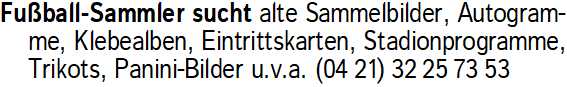 Anzeigentitel: Fußball-Sammler sucht alte Sam