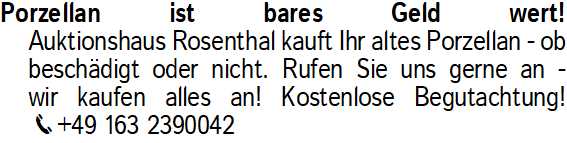 Anzeigentitel: Porzellan ist bares Geld wert!