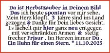 Anzeige vom 14.10.2025 in der Rubrik "Glückwünsche / Persönliches"