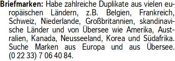 Anzeigentitel: Briefmarken: Habe zahlreiche D