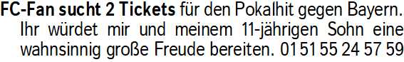 Anzeigentitel: FC-Fan sucht 2 Tickets für den