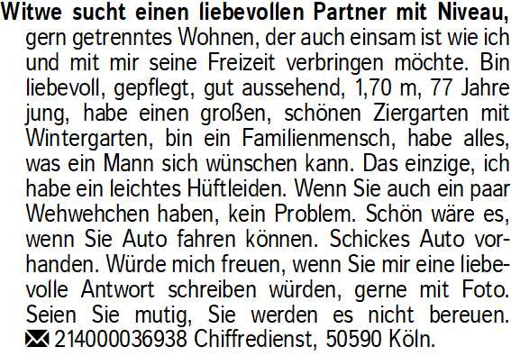 Anzeige vom 18.10.2025 in der Rubrik "Sie sucht Ihn"