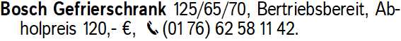 Anzeigentitel: Bosch Gefrierschrank 125/65/70