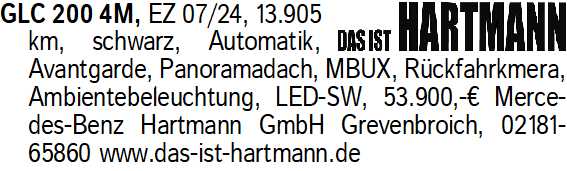 Anzeigentitel: GLC 200 4M, EZ 07/24, 13.905 k