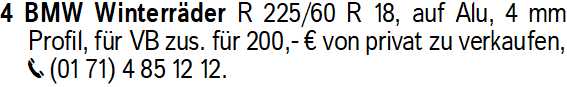 Anzeigentitel: 4 BMW Winterräder R 225/60 R 1