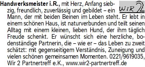 Anzeigentitel: Handwerksmeister i.R., mit Her