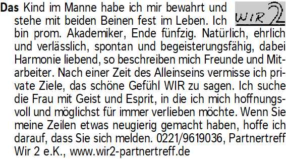 Anzeige vom 18.10.2025 in der Rubrik "Er sucht Sie"