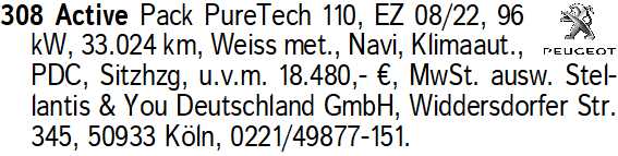 Anzeige vom 18.10.2025 in der Rubrik "Peugeot"