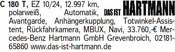 Anzeigentitel: C 180 T, EZ 10/24, 12.997 km,