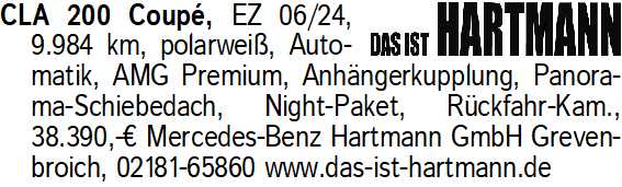Anzeigentitel: CLA 200 Coup , EZ 06/24, 9.984