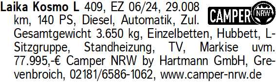 Anzeigentitel: Laika Kosmo L 409, EZ 06/24, 2