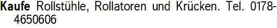 Anzeigentitel: Kaufe Rollstühle, Rollatoren u