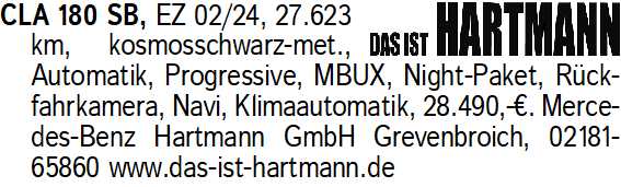 Anzeigentitel: CLA 180 SB, EZ 02/24, 27.623 k